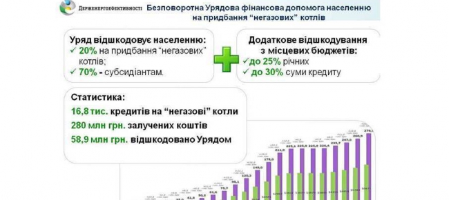 Within the program Ukrainians have attracted 280 million UAH to purchase almost 17 thousand "non-gas" boilers. The Government has already compensated them 58,9 million UAH.