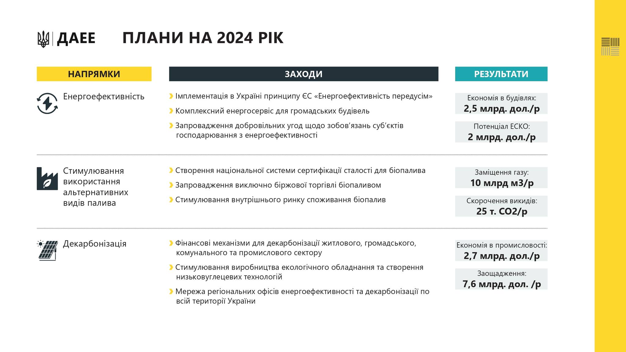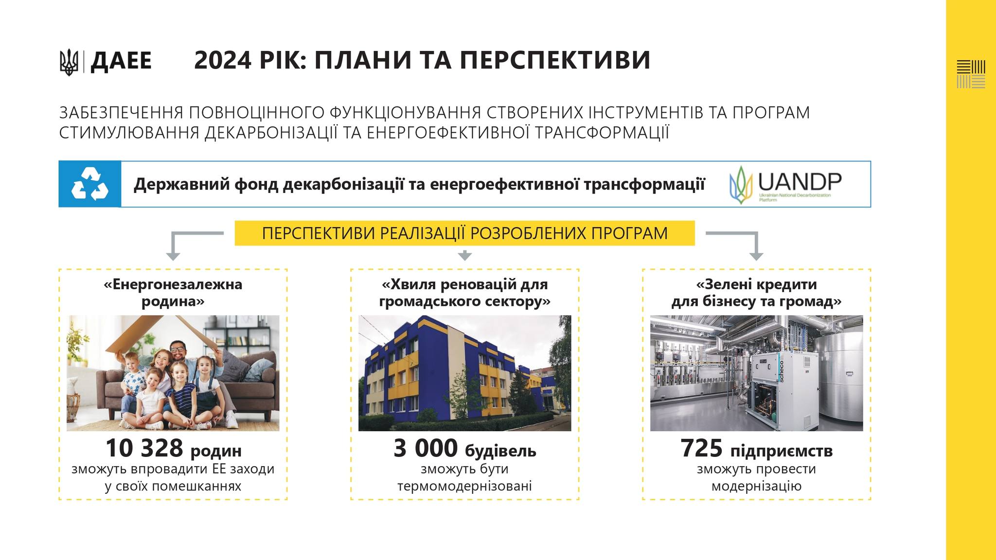 As for plans for 2024, the SAEE aims to continue working towards ensuring the full functionality of the created instruments and programs to stimulate decarbonization and energy-efficient transformation.