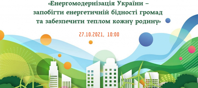 27 жовтня 2021 року о 10:00 відбудеться круглий стіл «Енергомодернізація України – запобігти енергетичній бідності громад та забезпечити теплом кожну родину».
