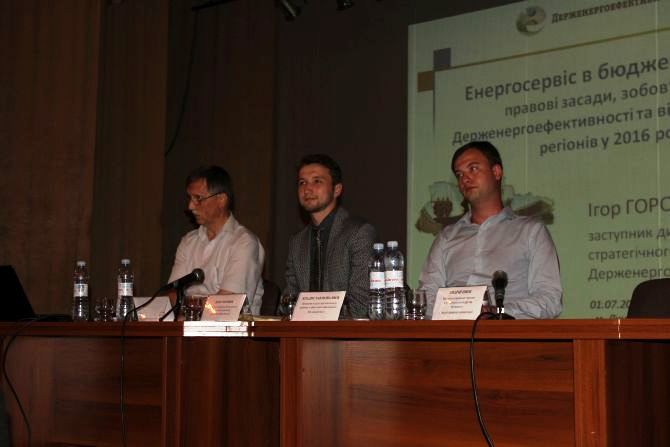 В свою чергу Ігор Горових, заступник Директора Департаменту стратегічного розвитку, та Роман Марецький, заступник Директора Департаменту технічного регулювання енергоефективності Держенергоефективності, виступаючи перед керівниками бюджетних установ міст та області, акцентували увагу на тому, що саме ЕСКО-компанія несе фінансові ризики за впровадження енергоефективного проекту, бере на себе повну відповідальність за якість робіт та зацікавлена у максимальній економії витрат за спожиті енергоресурси. Отже, бюджетна установа, яка вирішила впровадити енергоефективний захід за ЕСКО-механізмом, тільки виграє від його реалізації.