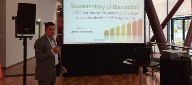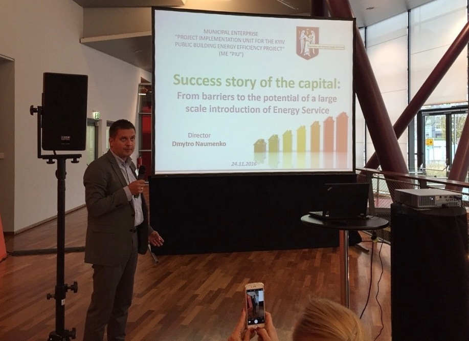 У свою чергу, Дмитро Науменко, директор КП «Київеско», презентував перші успіхи міста Києва у сфері залучення інвестицій у підвищення енергоефективності бюджетних установ за ЕСКО-механізмом.