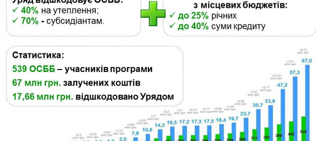 Загалом, з початку дії програми нею скористалося вже 539 ОСББ, які залучили 67 млн. грн на заходи з економії енергоресурсів та підвищення комфортних умов проживання.