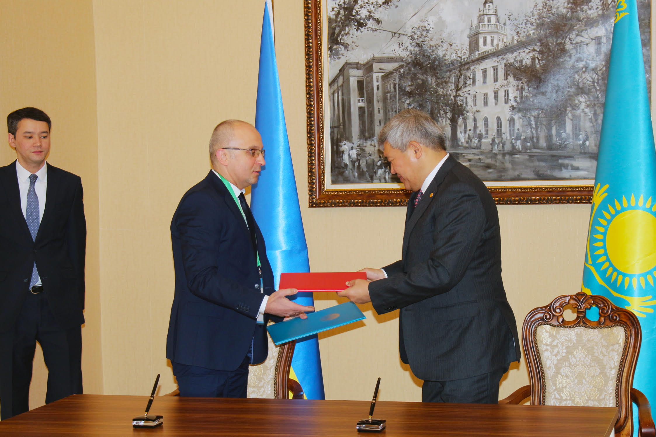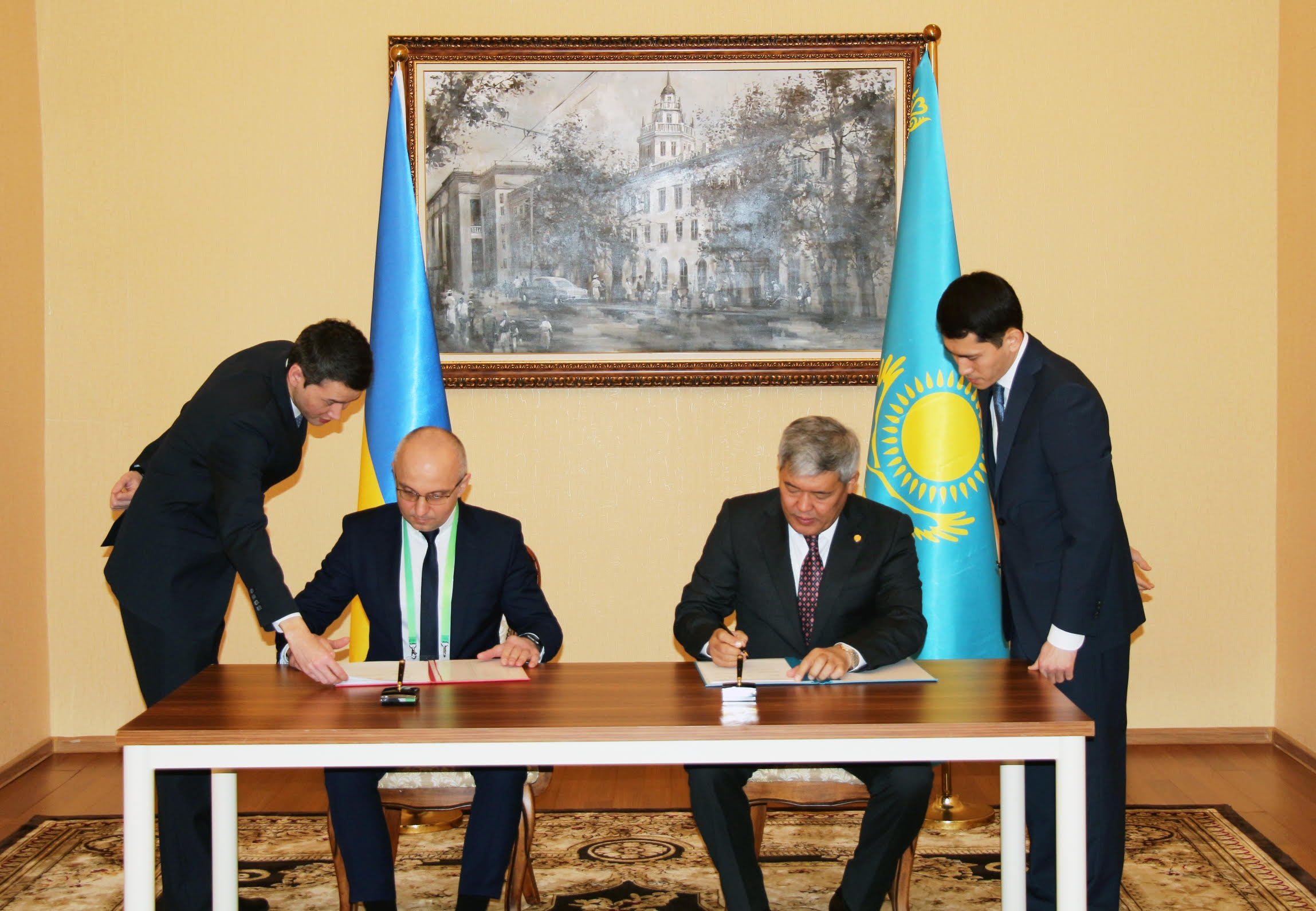 Договір про участь України у Міжнародній спеціалізованій виставці «ЕКСПО-2017» з боку України підписав Геннадій Зубко, Віце-прем’єр-міністр України-Міністр регіонального розвитку, будівництва та ЖКГ України – Комісар Національної секції України, з боку Казахстану – Ахметжан Єсімов, Голова правління ТОВ «Національна компанія «Астана ЕКСПО-2017», та Рапіль Жошибаев, Комісар Виставки, що представляє Уряд Республіки Казахстан.