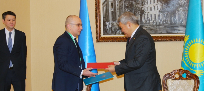 23 02 201723 лютого 2017 року у Міністерстві закордонних справ Казахстану відбулося підписання Договору про участь України у Міжнародній спеціалізованій виставці «ЕКСПО-2017», яка проходитиме у м. Астана з 10 червня по 10 вересня цього року. Тема виставки – «Енергія майбутнього».