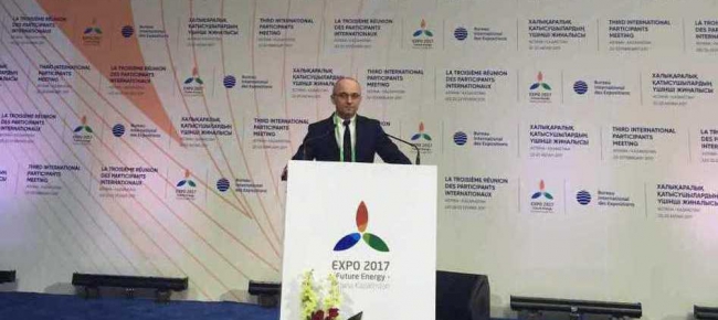 «Підписання договору – ключовий момент підготовки країни до участі у події міжнародного масштабу. Для нас надзвичайно важливо показати всім учасникам виставки – делегатам з понад 100 країн світу – Україну, її значний ресурсний потенціал, перспективи ведення «зеленого» бізнесу. Ми цінуємо можливість продемонструвати всім, що інвестувати в Україні варто і вигідно», – повідомив Голова Держенергоефективності Сергій Савчук, передаючи договір на підписання казахській стороні.