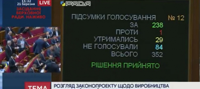 21 03 2017Сьогодні, 21 березня, на засіданні Верховної Ради України прийнято розроблений спільно з Держенергоефективності законопроект № 4334 щодо стимулювання виробництва теплової енергії з альтернативних джерел. За це рішення проголосувало 238 народних депутатів України.