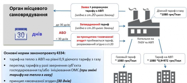 Голова Агентства також зазначив, що відповідно до цього закону інвестори, які реалізовуватимуть проекти із заміщення газу, отримають зафіксований на законодавчому рівні тариф на тепло з альтернативних джерел на рівні 90% від тарифу на тепло з газу для потреб бюджетних установ та населення. Таким чином, вони матимуть гарантії повернення коштів, вкладених у такі проекти. Це стимулюватиме їх працювати в Україні та встановлювати в містах та селах твердопаливні котельні, когенераційні установки на біомасі тощо.