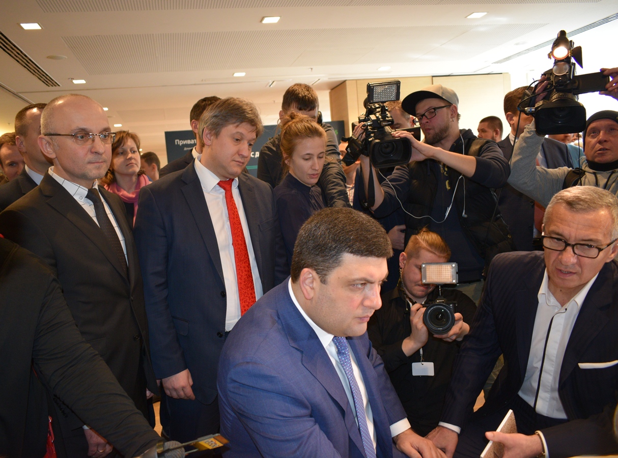 22 03 201721 березня Голова Держенергоефективності Сергій Савчук став учасником презентації нових інтерактивних сервісів від Приватбанку - «Приват.Share». Разом із Прем’єр-міністром України Володимиром Гройсманом та іншими високопосадовцями Голова Агентства ознайомився з низкою оновлених технологій ПриватБанку, завдяки яким можна оперативно отримувати різноманітні банківські послуги.