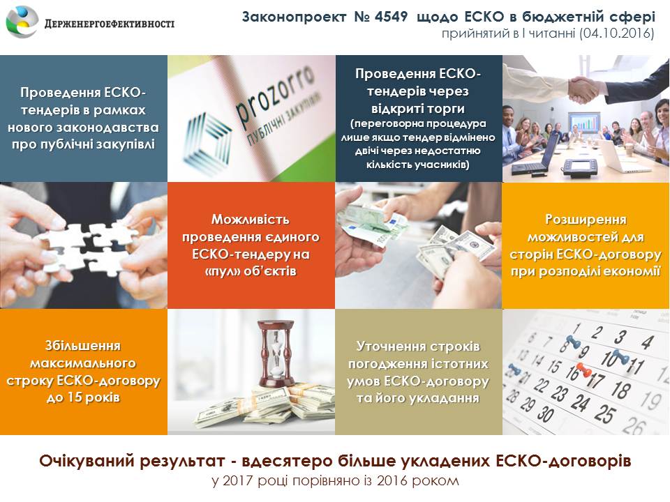 -       розширення можливостей роботи ЕСКО-компаній на ринку України;
