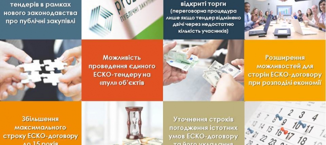 Сьогодні, у зв’язку із новим законодавством у сфері публічних закупівель, виникає нагальна необхідність внести зміни до базового законодавства про енергосервіс. Зазначеним законопроектом пропонується удосконалити ЕСКО-механізм і забезпечити можливість застосування електронних аукціонів через систему PROZORRO для закупівель енергосервісу.