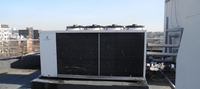 Мова йде про Харківський офісний центр, що відмовився від газо- та теплопостачання. У центрі встановлено теплові насоси, що використовують енергію повітря і землі та обігрівають семиповерхову будівлю, а це 3,5 тис м2.