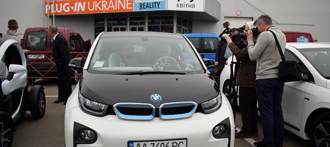 Перед автопробігом Голова Агентства здійснив тест-драйв електрокару, що відбувся на відкритому майданчику виставкового центру «КиївЕкспоПлаза» в рамках виставки «Plug-In Ukrainе 2017».
