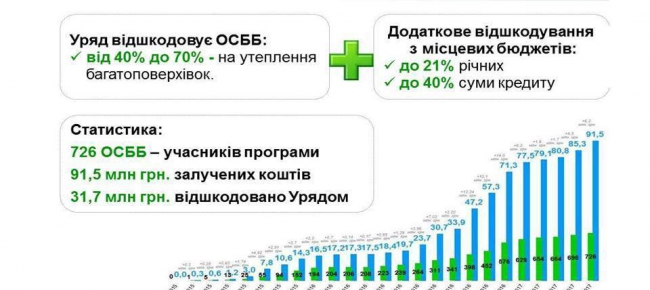 Загалом, станом на сьогодні 726 ОСББ стали учасниками Урядової програми «теплих» кредитів. Разом вони залучили 91,5 млн грн на утеплення житла.