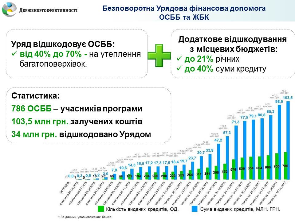 Таких прикладів успішної участі ОСББ та ЖБК у програмі багато. З початку дії програми нею скористалося вже 786 ОСББ, залучивши на енергоощадність 103,5 млн гривень.