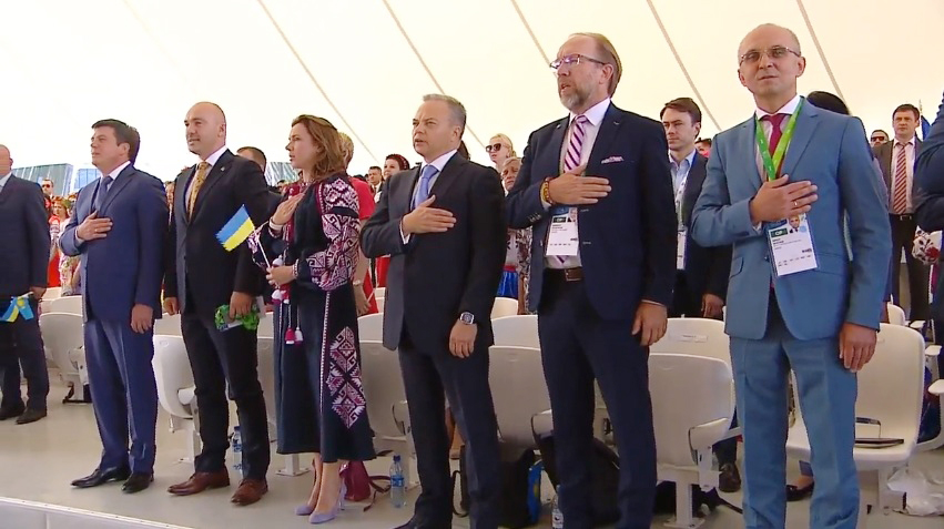 По завершенню офіційного відкриття учасники розгорнули рекордної довжини рушник, що виткали переяславські майстри фабрики художніх виробів спеціально для EXPO-2017. У той же час увесь зал підхопив милодійну «Пісню про рушник».