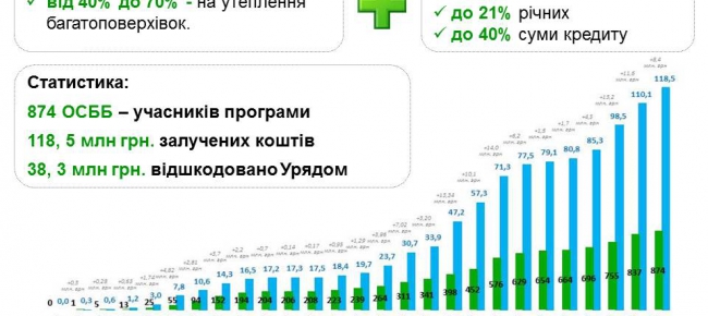 Загалом, з початку дії програми 874 ОСББ залучили більше 118 млн грн. на термомодернізацію багатоповерхівок.