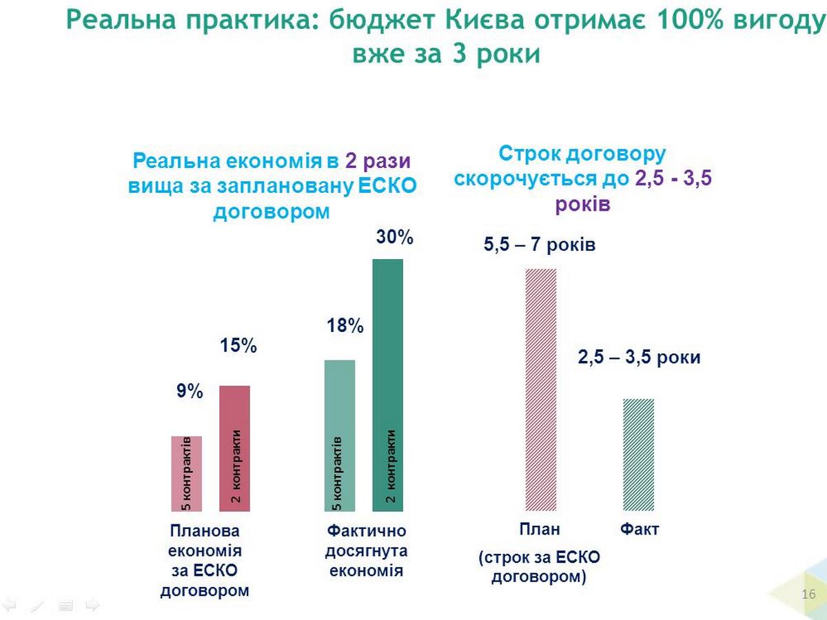 При цьому, вже сьогодні ЕСКО-інвестори заявляють про те, що економія споживання тепла вдвічі вища за заплановану договором. Це означає, що повернення інвестицій здійснюватиметься набагато швидше. Цей факт підігріває інтерес інвесторів до подальшої роботи та пошуку нових об’єктів, у тому числі на Чернігівщині.