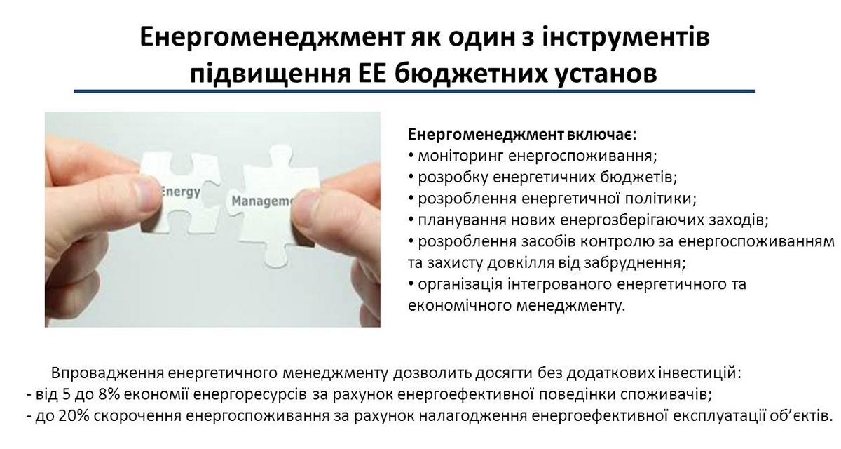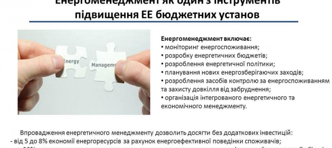Крім цього, Павло Ладецький, начальник Управління енергетичного менеджменту та стандартизації Держенергоефективності, презентував переваги впровадження системи енергоменеджменту у бюджетній сфері.