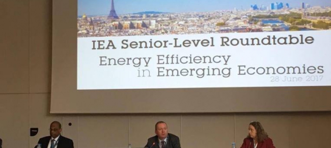 28 06 2017Цілі України щодо скорочення енергоспоживання, досягнення та нещодавно прийняті закони, а також прогнози щодо зменшення енергоємності вітчизняної економіки – все це презентував Голова Держенергоефективності Сергій Савчук у ході круглого столу «Енергоефективність в країнах з економікою, що розвивається», організованого Міжнародним енергетичним агентством 28 червня у Парижі (Франція).