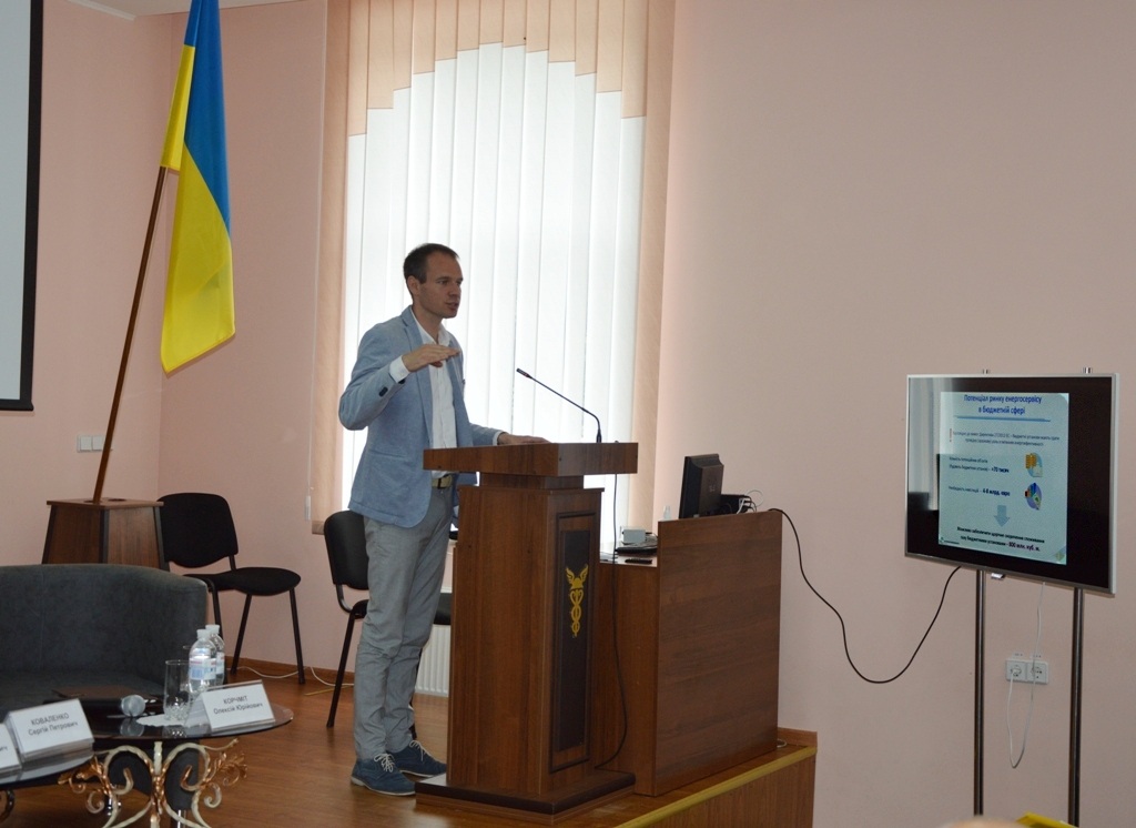Як пояснив радник Голови Держенергоефективності Олексій Корчміт, бюджетні установи займають чимале місце у питаннях енергоефективності. «Кількість об'єктів (будівель бюджетних установ), що потребує термомодернізації, складає приблизно 70 тисяч в Україні. Завдяки енергоефективним заходам саме у цьому секторі можливо забезпечити щорічне скорочення споживання газу на 800 млн м3. Водночас, для цього необхідні інвестиції у сумі 4-8 млрд євро. Альтернативне рішення – це передовий європейський інструмент ЕСКО», - пояснив О. Корчміт.