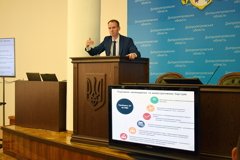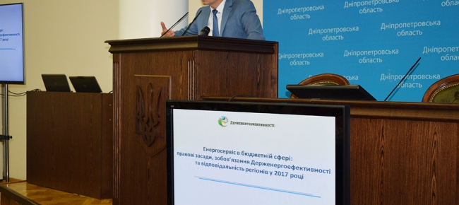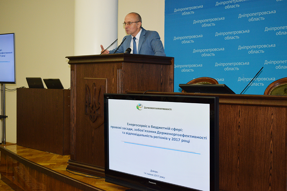 Про це йшлося на семінарі «ЕСКО та енергоменеджмент – ефективні інструменти термомодернізації бюджетних установ», проведеного Держенергоефективності спільно з Дніпропетровською ОДА за підтримки Фонду ім. Ф. Еберта в Україні 14 липня в Дніпрі.
