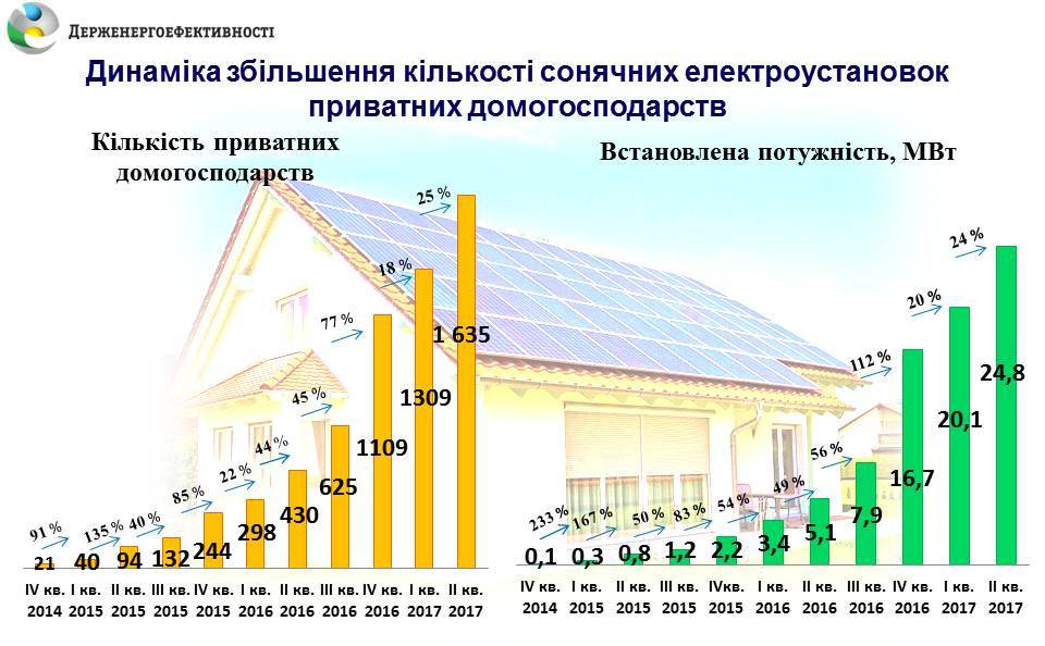Сьогодні, станом на кінець II кварталу 2017 року, 1635 домогосподарств встановили сонячні панелі. Це майже в 4 рази більше ніж рік тому.