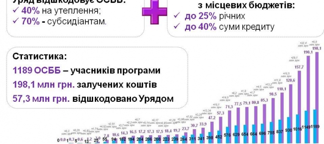 Загалом, з початку дії програми нею скористалися майже 120 ОСББ та ЖБК, залучивши на утеплення своїх будинків майже 200 млн гривень. Найактивніше до програми долучаються ОСББ Запорізької, Рівненської та Дніпропетровської областей. Найбільшу суму коштів на утеплення, а саме – 37 млн грн., взяли ОСББ Волинської області.