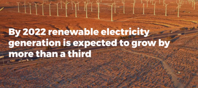 До 2022 р. обсяг виробництва електроенергії з відновлюваних джерел у світі зросте більш ніж на третину