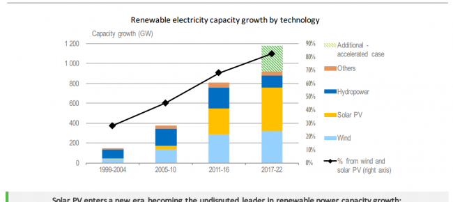 На основі цих даних експерти прогнозують подальший впевнений приріст нових потужностей, що генерують «чисту» електроенергію, на близько 1000 ГВт або на 43% до 2022 року. «Першу скрипку» впродовж наступних 5 років гратиме саме сонячна енергетика, випереджаючи вітрову та гідроенергетику.