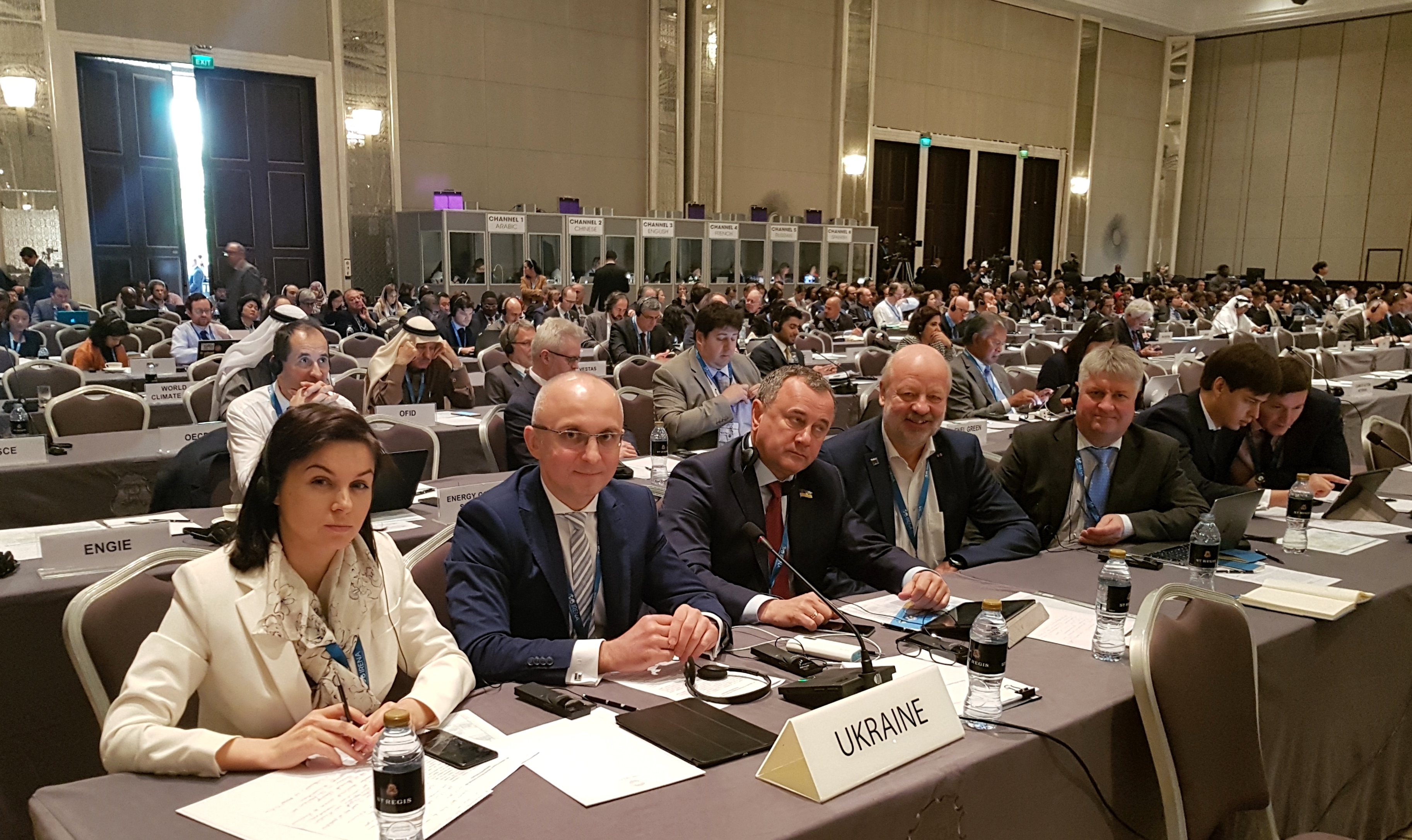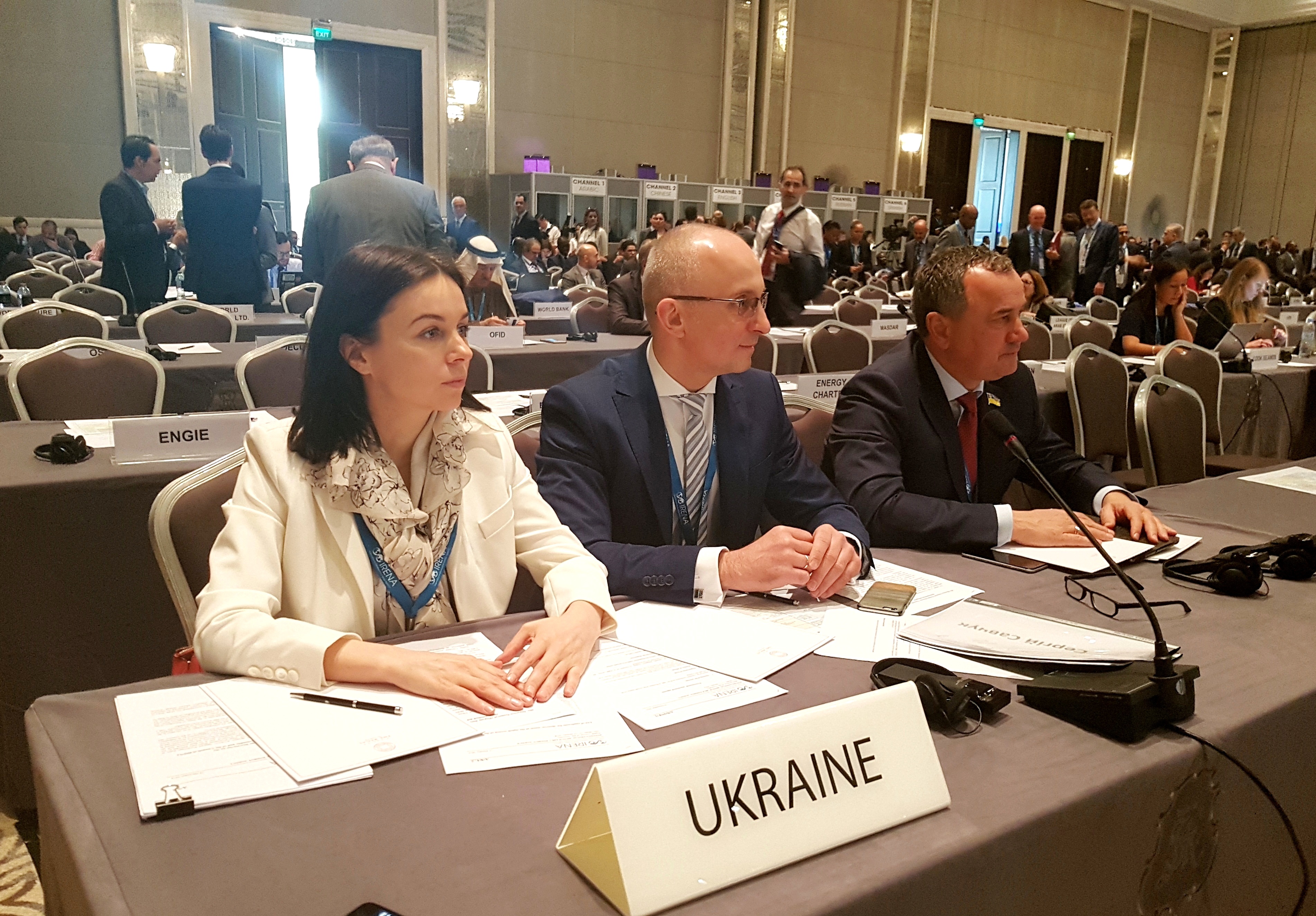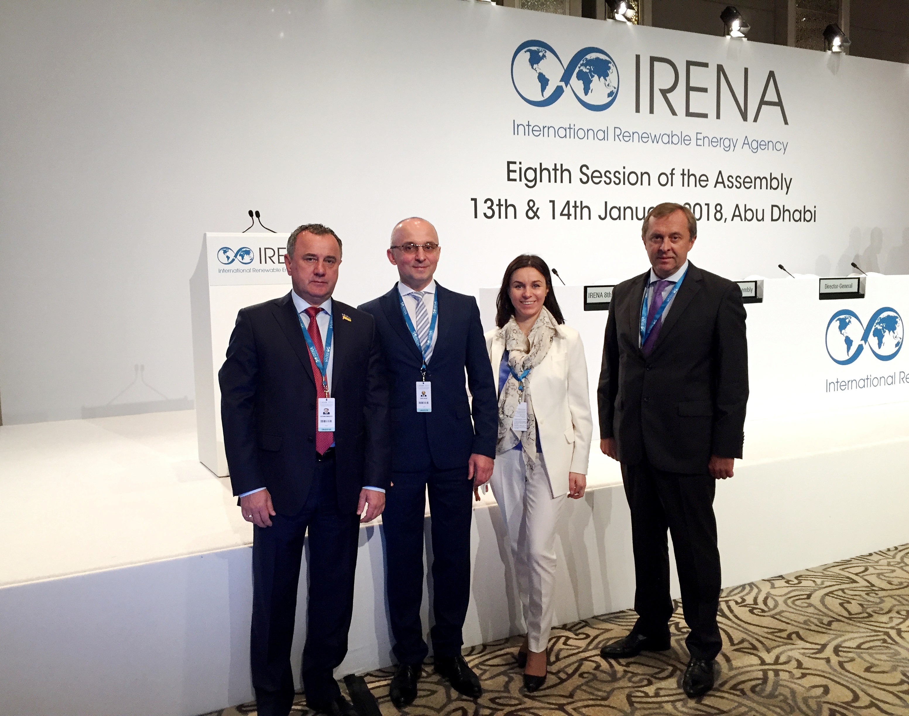 Українську делегацію на 8-ій сесії Асамблеї IRENA також представляли: народні депутати України Олександр Домбровський та Наталія Кацер-Бучковська, Надзвичайний і Повноважний Посол України в ОАЕ Юрій Полурез, Голова правління Української вітроенергетичної асоціації Андрій Конеченков, директор Департаменту відновлюваних джерел енергії Держенергоефективності Юрій Шафаренко та співробітники Посольства України в ОАЕ (http://uae.mfa.gov.ua/ua).