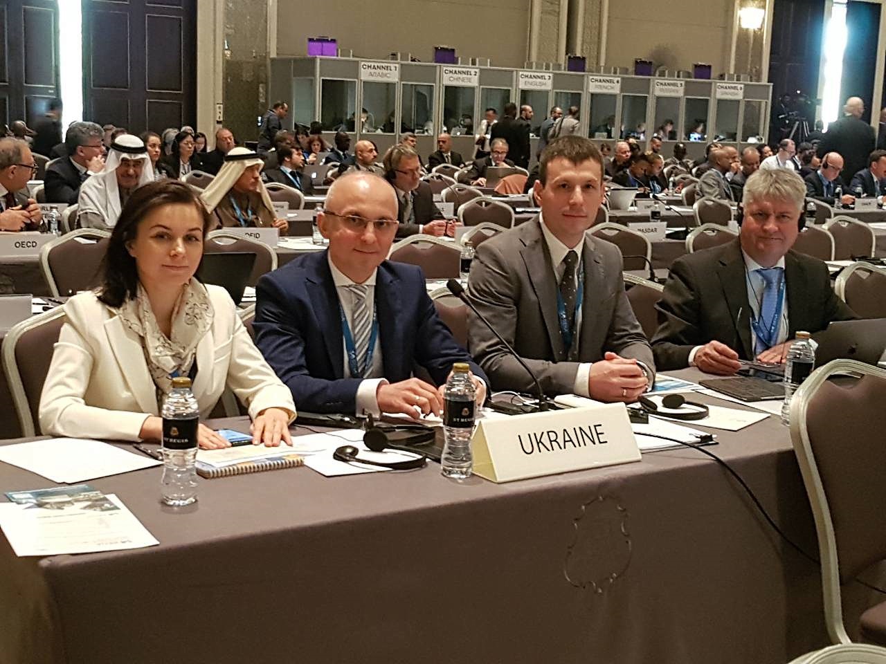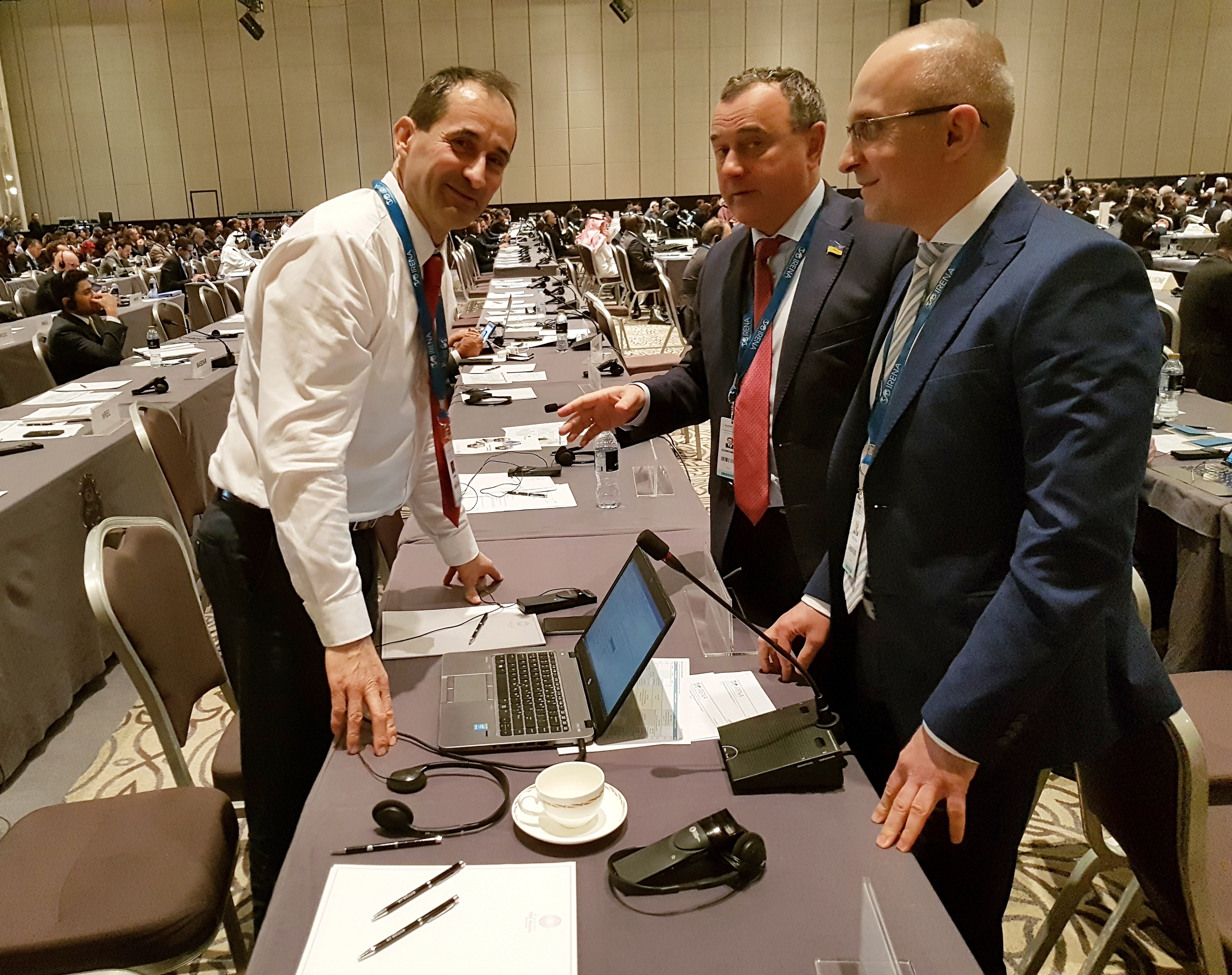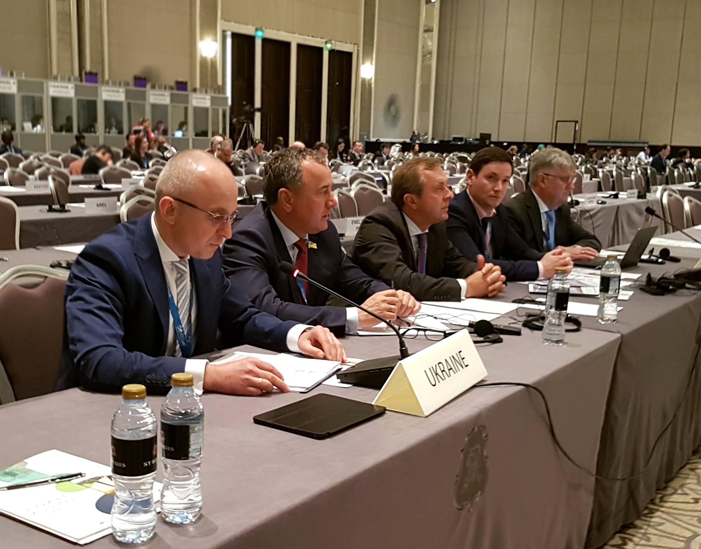 Українську делегацію на 8-ій сесії Асамблеї IRENA також представляли: народні депутати України Олександр Домбровський та Наталія Кацер-Бучковська, Надзвичайний і Повноважний Посол України в ОАЕ Юрій Полурез, Голова правління Української вітроенергетичної асоціації Андрій Конеченков, директор Департаменту відновлюваних джерел енергії Держенергоефективності Юрій Шафаренко та співробітники Посольства України в ОАЕ (http://uae.mfa.gov.ua/ua).