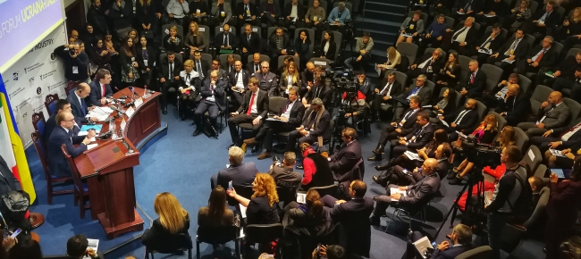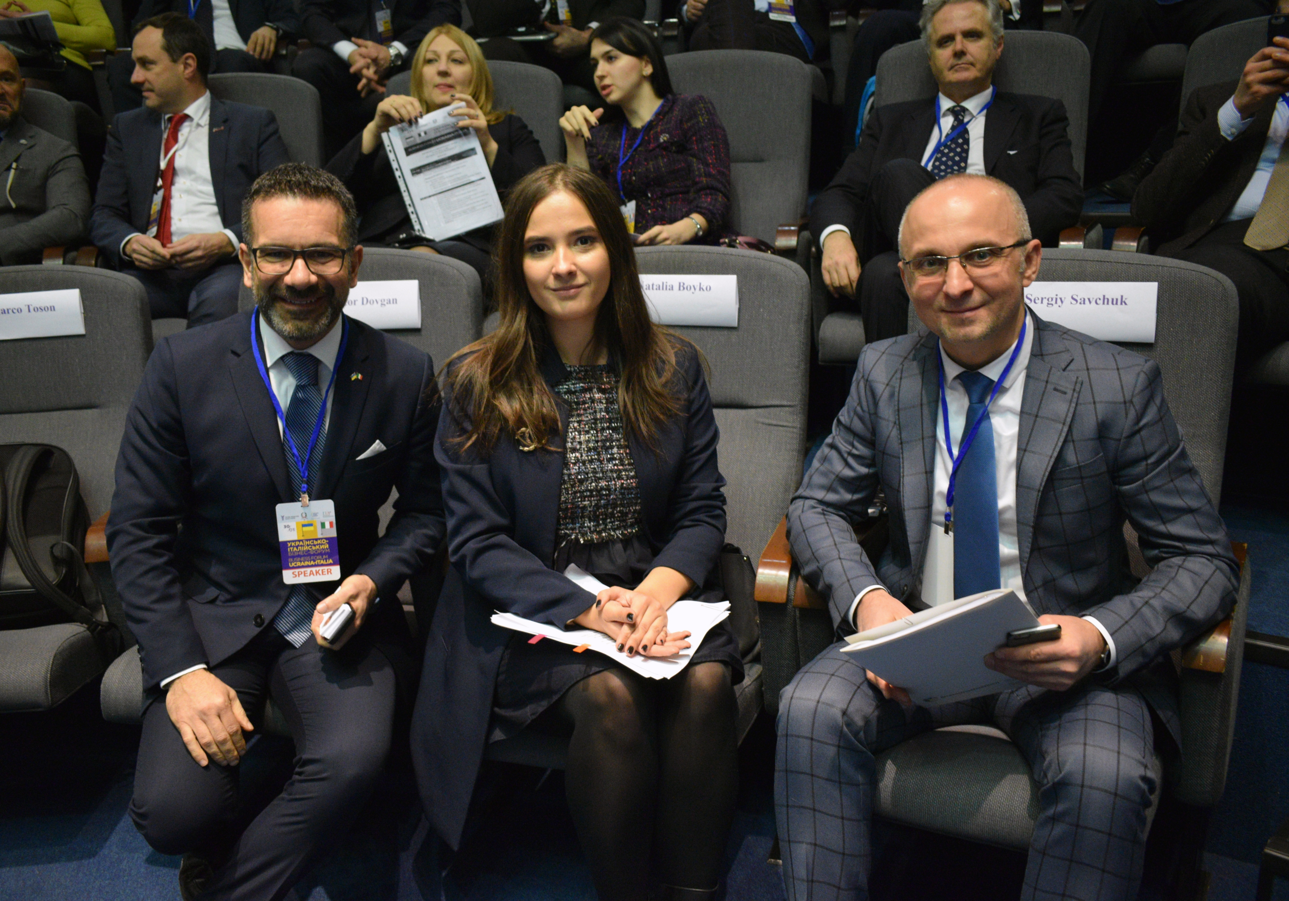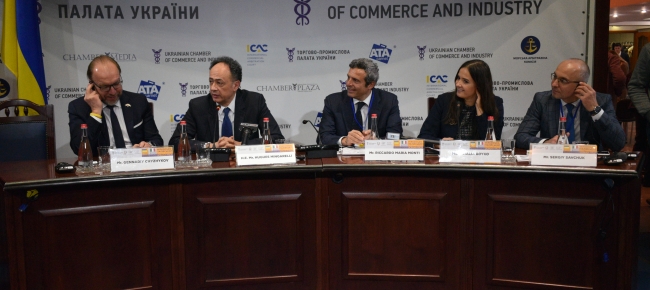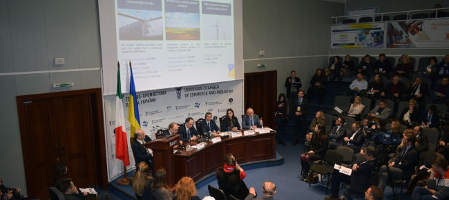 Стан, перспективи та пріоритетні напрямки українсько-італійського економічного та інвестиційного співробітництва, умови та переваги ведення бізнесу в Україні та Італії окреслили Міністр закордонних справ України Павло Клімкін, Міністр інфраструктури України Володимир Омелян, Голова Представництва ЄС в Україні Хюґ Мінґареллі та заступник Міністра енергетики та вугільної промисловості України з питань європейської інтеграції Наталія Бойко.