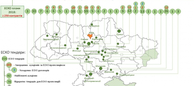 У результаті сьогодні оголошено вже 316 ЕСКО-тендерів. При цьому, в регіонах країни відібрано понад 12 тис. потенційних ЕСКО-об’єктів і ця кількість зростатиме.