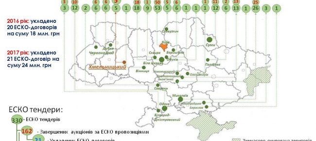 «Темпи залучення ЕСКО-інвесторів у модернізацію бюджетної сфери вражають. За кілька місяців 2018 р. маємо понад 300 оголошених тендерів, більшу половину яких вже завершено. Це означає, що найближчим часом у близько 160 бюджетних закладах в різних регіонах України очікується реалізація енергоефективних заходів за кошти інвесторів», - прокоментував Голова Держенергоефектвності Сергій Савчук.
