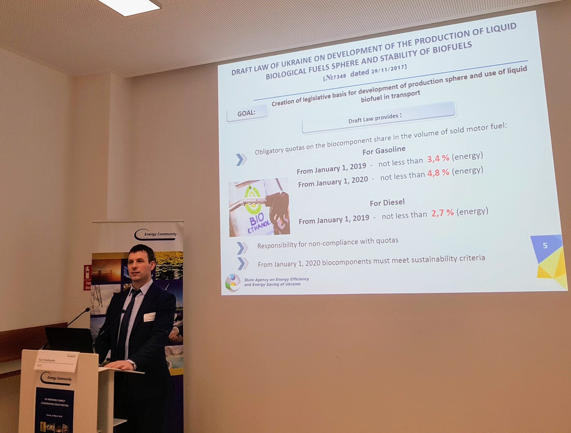 23 03 2018На цьому наголосив Юрій Шафаренко, директор Департаменту відновлюваних джерел енергії Держенергоефективності, доповідаючи у Секретаріаті Енергетичного Співтовариства про стан імплементації Україною європейського законодавства у сфері розвитку використання відновлюваних джерел енергії, зокрема, рідких біопалив.