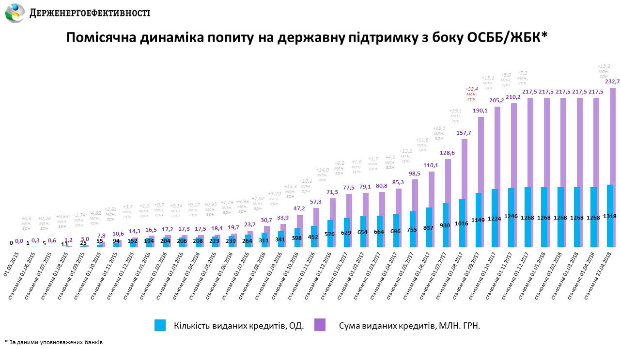 Загалом, за весь час дії програми до неї звернулося понад 1300 ОСББ, залучивши більше 230 млн грн. «теплих кредитів».
