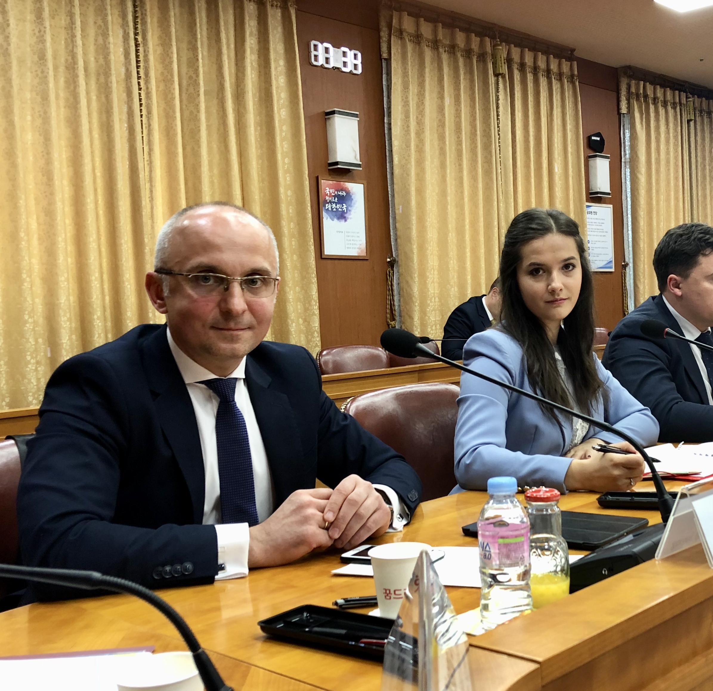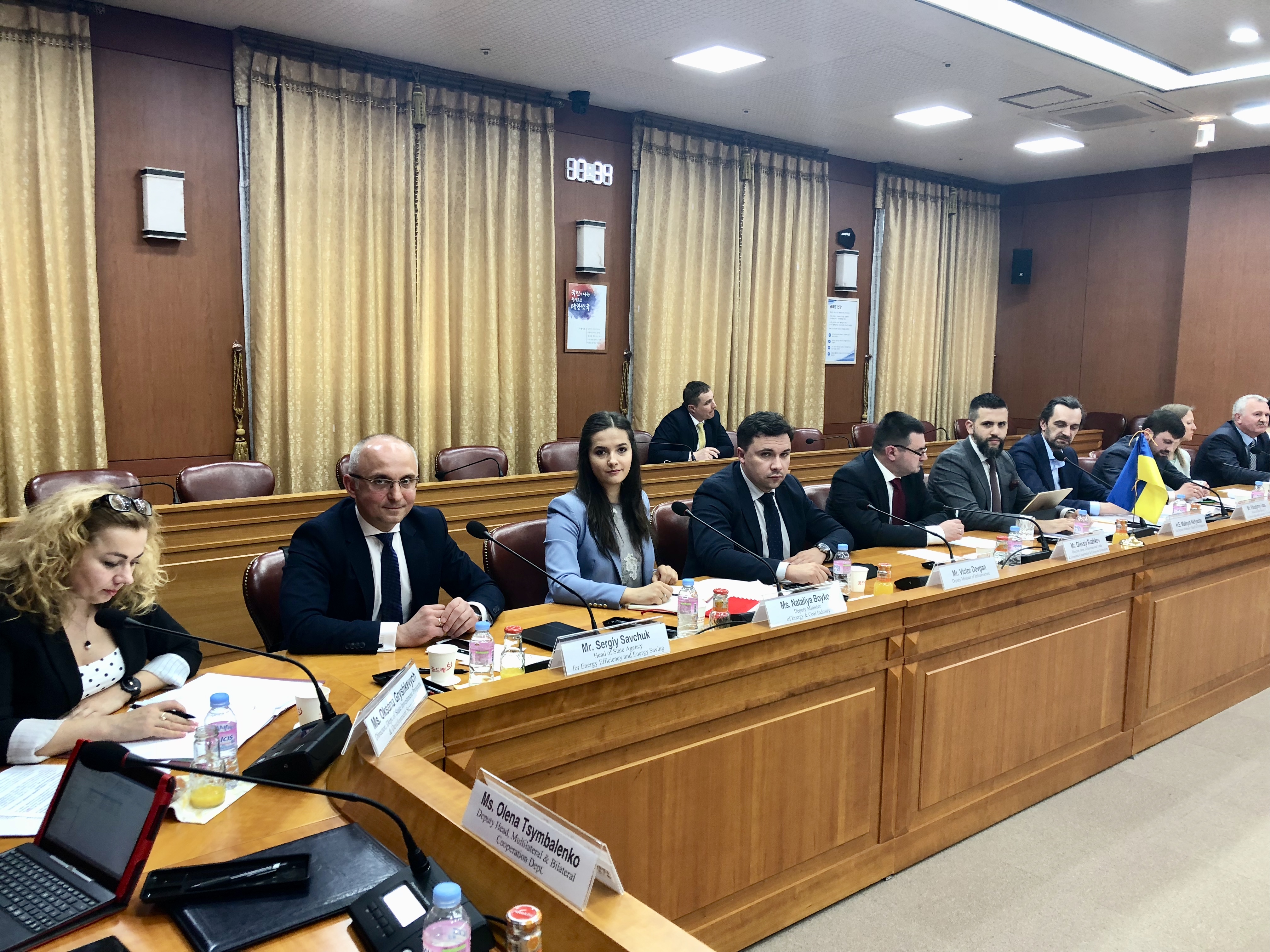 25 04 2018У рамках візиту урядової делегації України до Республіки Корея Голова Держенергоефективності Сергій Савчук взяв участь у засіданні Міжурядової українсько-корейської комісії з питань торговельно-економічного співробітництва, що відбулося під головуванням Першого заступника Міністра економічного розвитку і торгівлі України Максима Нефьодова та заступника Міністра закордонних справ Республіки Корея з економічних питань Юн Канґ-Хьона.