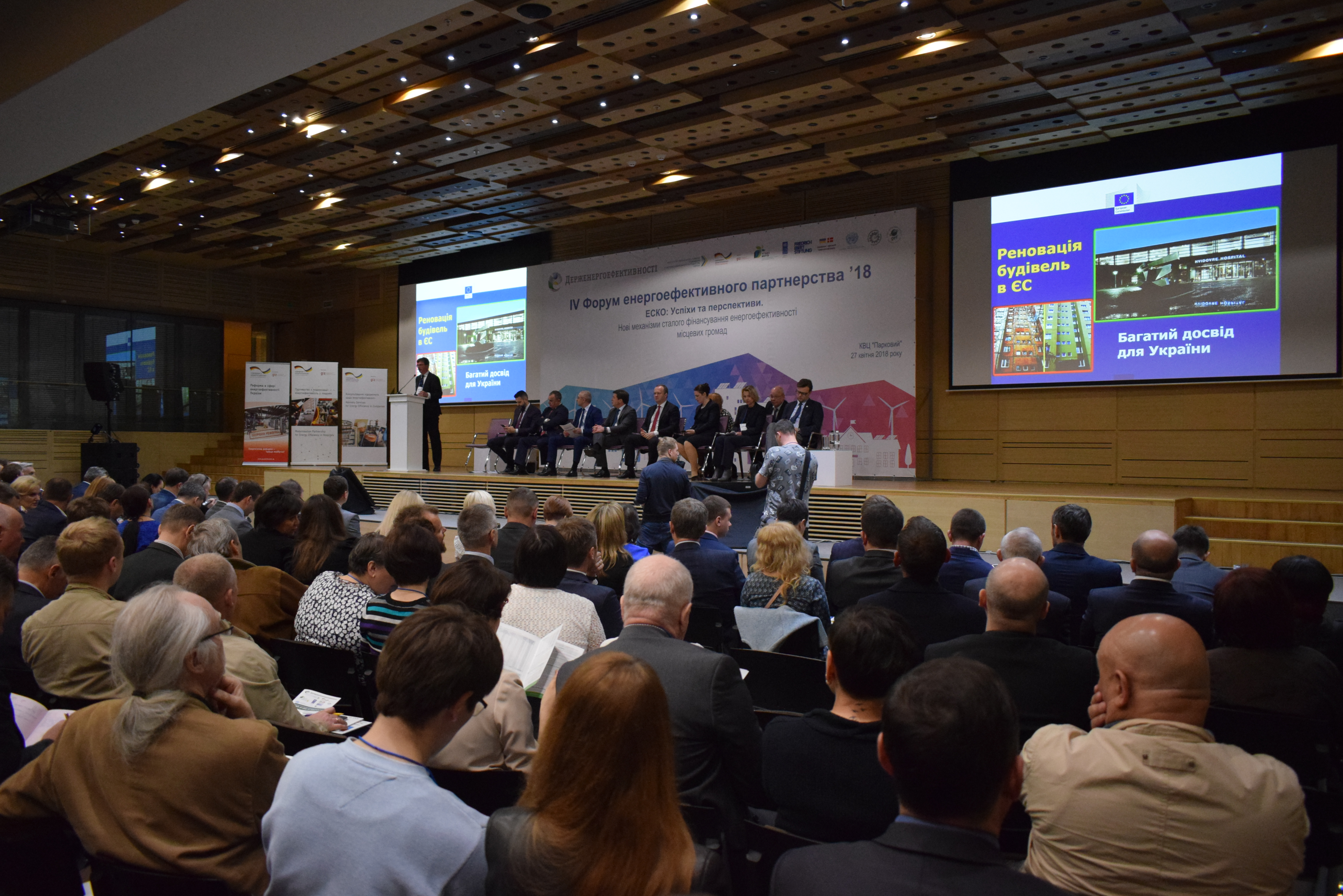 27 04 2018ЕСКО стає для України ефективним механізмом термомодернізації бюджетних установ, а також активізації бізнесу та інвесторів у сфері енергоефективності. Таким був лейтмотив IV Форуму енергоефективного партнерства’18, на якому 27 квітня Держенергоефективності зібрало понад 800 учасників: урядовців, парламентарів, представників місцевої влади, бізнесу, іноземних партнерів та громадськість.