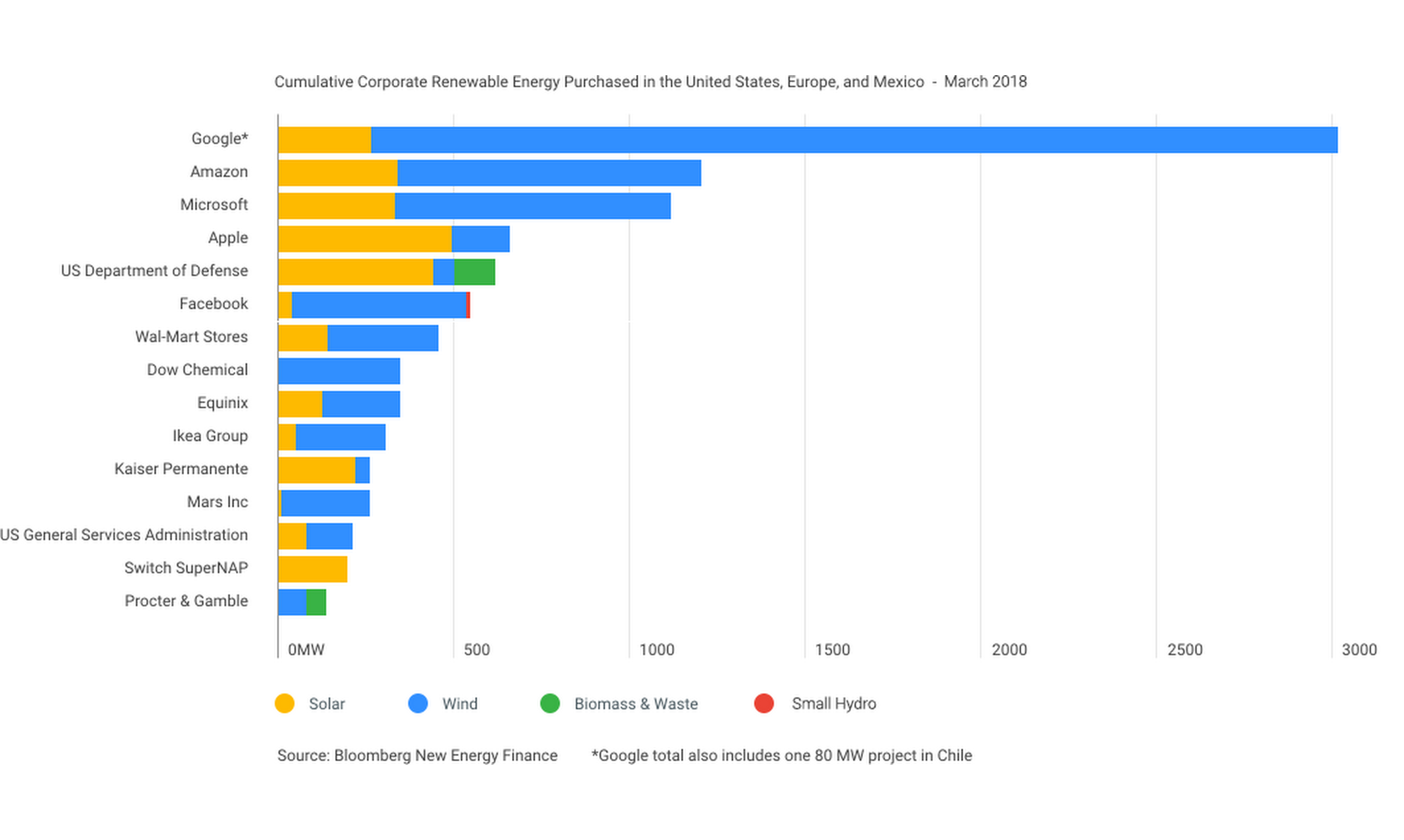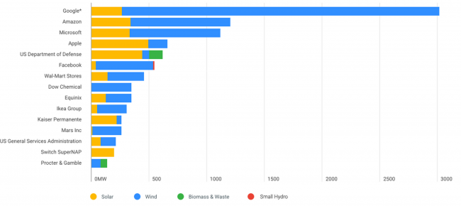 Услід за «Google» купують «чисту» електроенергію такі відомі компанії, як «Amazon» (https://www.amazon.com), «Microsoft» (https://www.microsoft.com), «Apple» (https://www.apple.com), «Facebook» та інші.