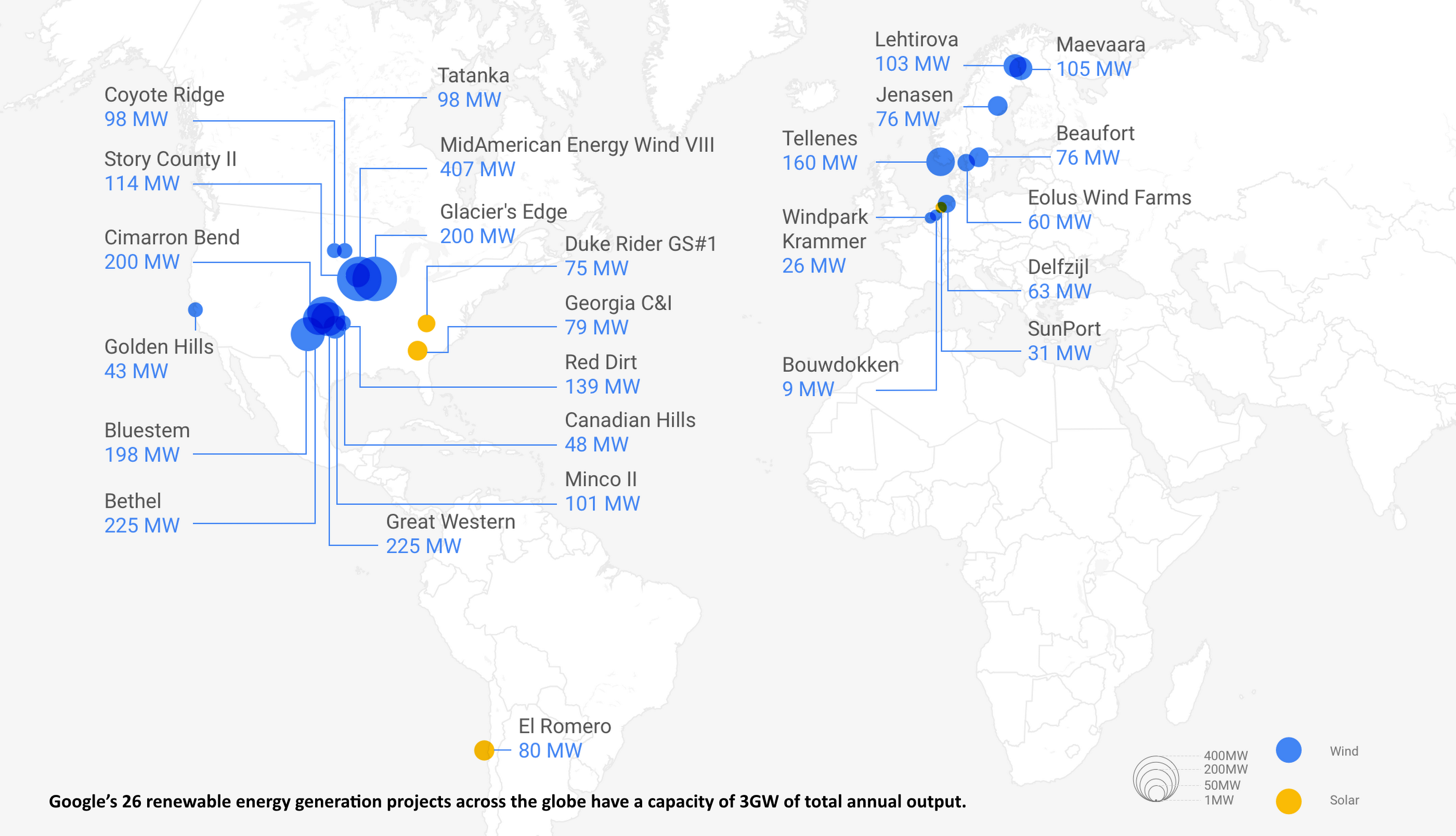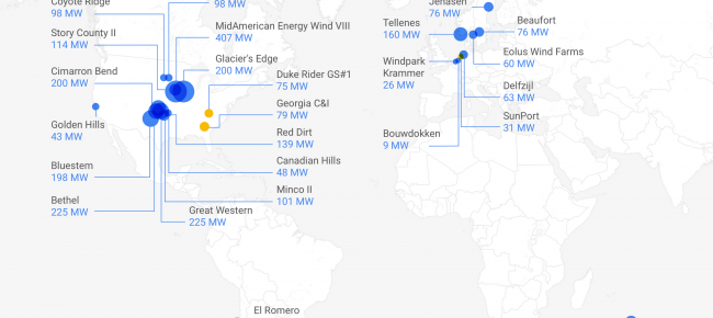 Загальна потужність 26 об’єктів з відновлюваної енергетики, які генерують «чисту» енергію для «Google», становить 3 ГВт. Це понад 3 млрд доларів інвестицій!