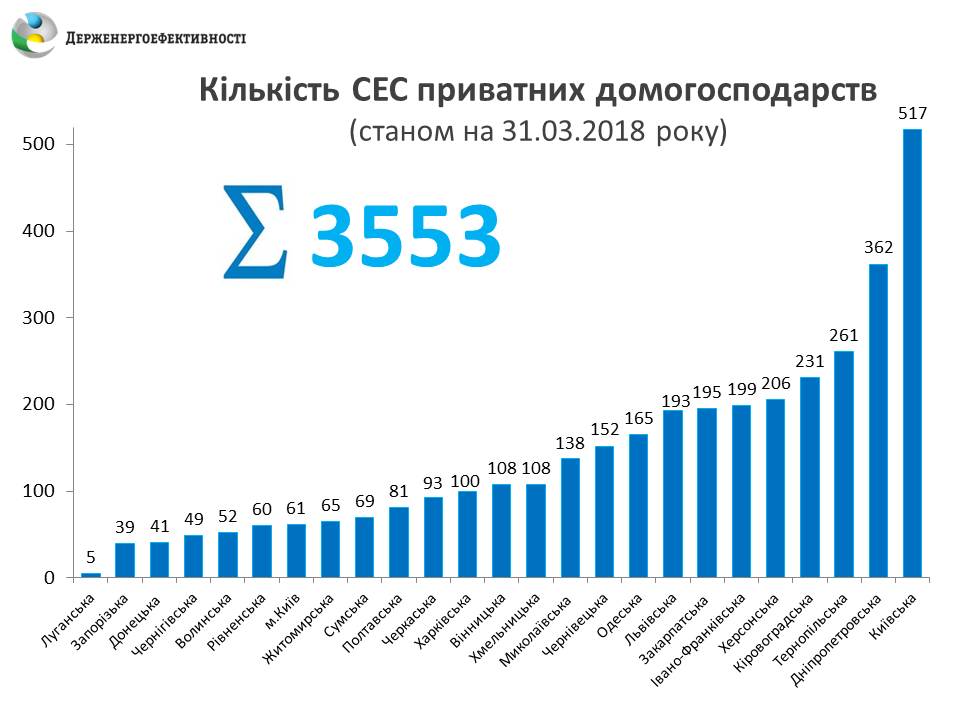 На сьогодні, лідерами за кількістю встановлених приватних сонячних станцій (СЕС) є такі регіони: