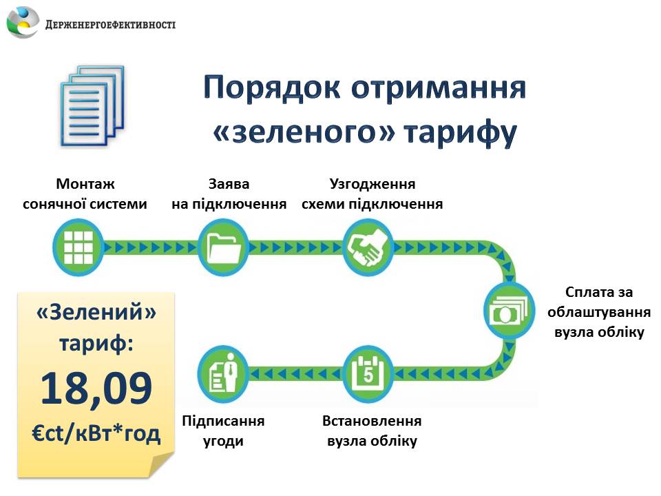 Все це завдяки удосконаленому та прив’язаному до курсу євро «зеленому» тарифу на електроенергію, вироблену сонячними станціями потужністю до 30 кВт. Відповідний Закон України № 514-19 розроблено у тісній співпраці з Держенергоефективності та прийнято Парламентом у червні 2015 року (http://zakon3.rada.gov.ua/laws/show/514-19).