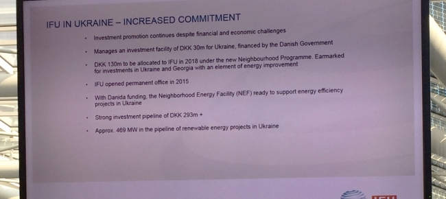 «Наразі ми зацікавлені у подальшому залученні УДЕЦ та данських партнерів щодо створення механізмів фінансування проектів «чистої» енергетики. У полі нашого зору – активізація співпраці із Данським інвестиційним фондом, який, до речі, надав співфінансування для встановлення вітроелектростанції «Старий Самбір-2» потужністю 20,7 МВт на Львівщині минулого року», - прокоментував Голова.