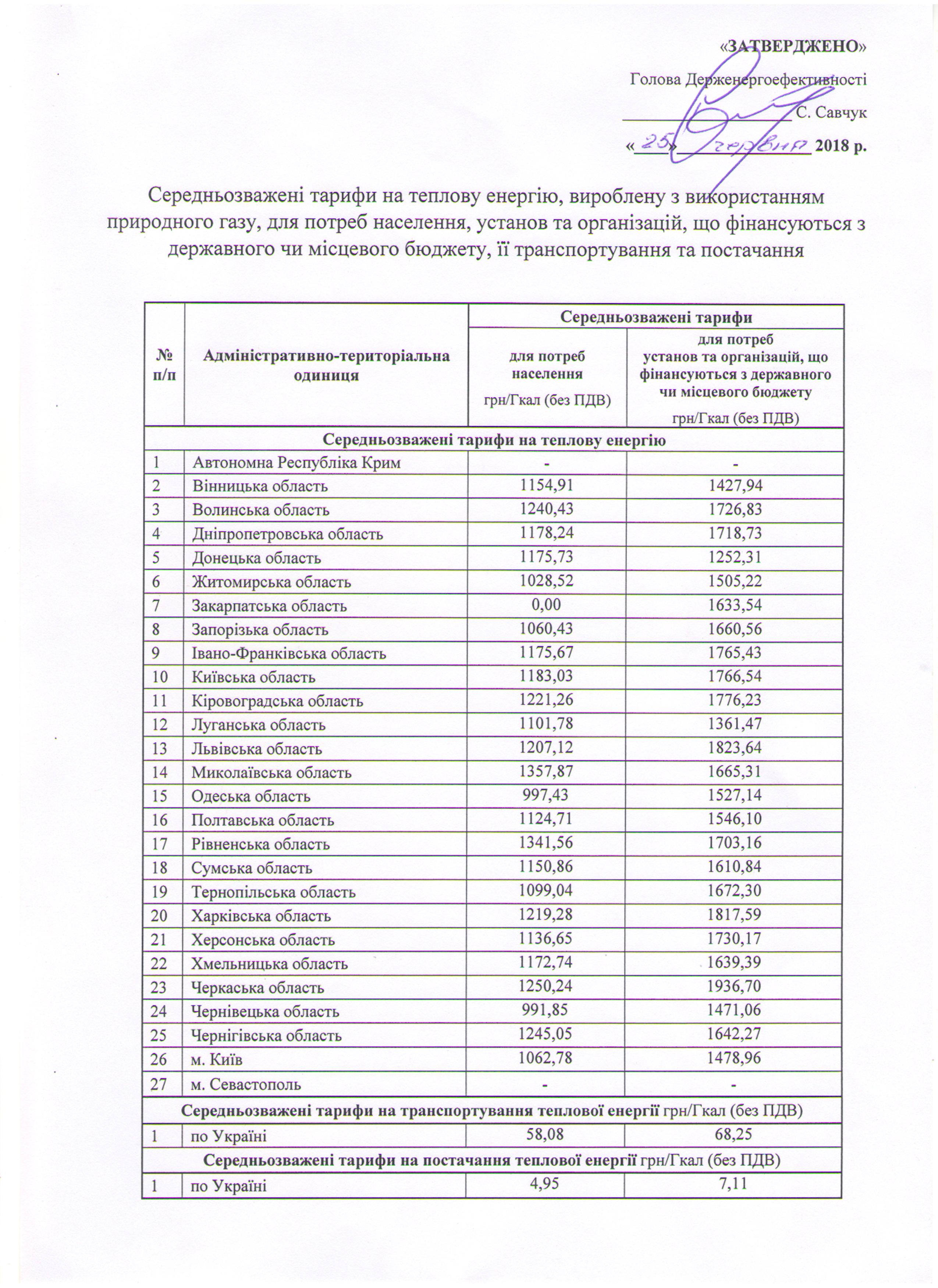 Середньозважені тарифи від 25.06.2018 можна завантажити за посиланням: https://old.saee.gov.ua/sites/default/files/Taryfy_25_06_2018.pdf.