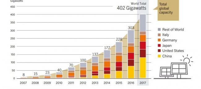 Так, за даними міжнародної організації «REN21», у 2017 р. Японія зайняла третє місце у світі за обсягом інвестицій у відновлювану енергетику. Також, станом на кінець минулого року ця країна входить у ТОП-5 країн світу за введеними потужностями у біо- та сонячній енергетиці.