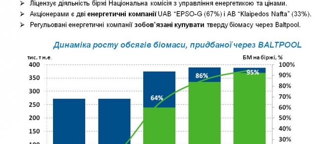 Наприклад, у Литві з початку запуску біржі «Baltpool» у 2012 р. і по 2015 р. вартість біопалива зменшилася на 40 відсотків. Протягом 2014-2016 рр. середня вартість біомаси на біржі становила на 5-15% нижче ціни біомаси, придбаної поза біржею. Крім цього, збільшилася кількість постачальників сировини.