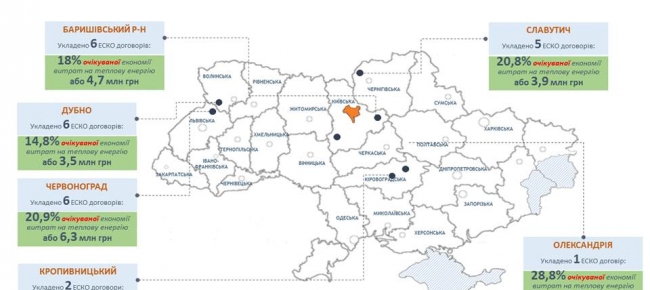 «Завдяки ЕСКО можна, наприклад, утеплити стіни, замінити вікна, встановити індивідуальний тепловий пункт і заощадити 65 відс. теплової енергії. Школа починає платити, наприклад, не 800 тис. грн на рік за опалення, а близько 350 тис. гривень. 90 відс. зекономлених коштів віддаються інвестору протягом п'яти років, решта 10 – 20 відс. залишаються як певна економія в бюджеті. Після закінчення ЕСКО-проекту обладнання та матеріали передаються у власність управління освіти, а вся економія вже належить безпосередньо бюджету», – пояснив Олексій Корчміт.