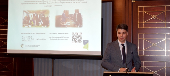 «Фінсько-український трастовий фонд - результат плідної співпраці МЗС Фінляндії та Держенергоефективності, започаткованої підписанням відповідного Меморандуму у 2017 р. під час візиту Президента України П. Порошенка до Фінляндії», - пояснив Костянтин Гура, радник Голови Держенергоефективності, презентуючи Фонд на семінарі щодо кращих механізмів розвитку «чистої» енергетики на основі досвіду скандинавських країн.