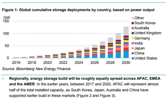При цьому, як інформує BNEF, ринок електроакумуляційних станцій збільшиться до 125 ГВт у 2030 році і залучить понад 100 млрд доларів інвестицій.