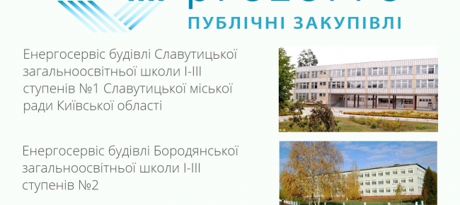• м. Славутич, де місто долучиться до енергосервісу і візьметься за заміну дерев’яних вікон та вхідних дверей на металопластикові у школі № 1 (термін подання пропозицій –  до 10 грудня, https://prozorro.gov.ua/tender/UA-2018-11-08-000489-a);